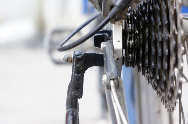 這時老闆拿了根螺絲來跟我們解說他的想法。由於沒有螺紋了,所以只要找跟夠長的螺絲穿過去,一邊只要大於洞口就可以卡住,而另一邊再用幾個螺帽鎖上就完成了,剩下就只需要把內側的螺絲頭削薄一點,不要影響到鍊條焊飛輪的運作即可大功告成了。
