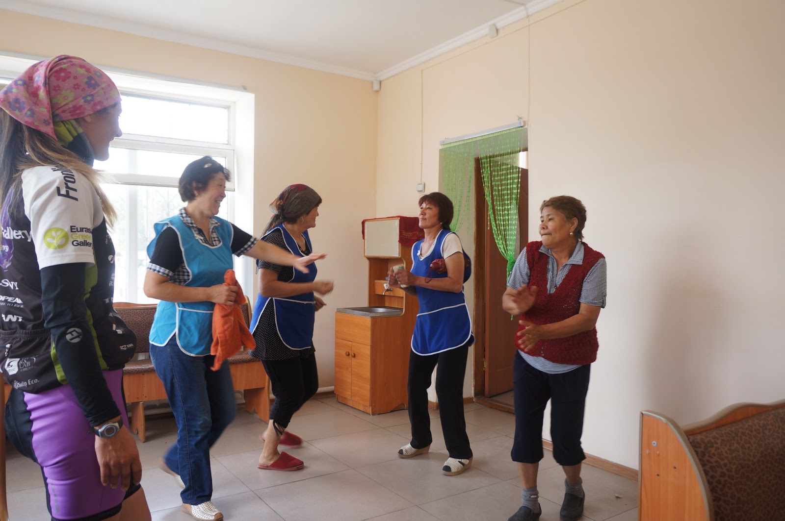 東西買完我們到隔壁的座位區坐著吃,聽著正在撥放的哈薩克音樂,享受第一頓自己用錢換來的餐點。櫃檯的阿姨過來把音樂轉大聲,接著第二個、第三個、第四個全部都一起過來,開始跟著音樂擺動跳起舞來,舞姿類似烏魯木齊看過維族跳的樣子。