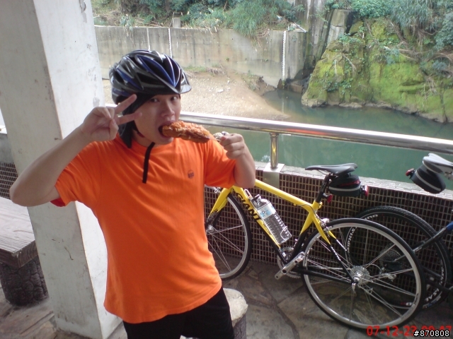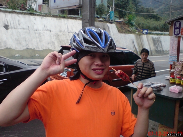 雖然早上七點就知道活動取消了…但是我跟我弟弟還是不死心…仍然到了木柵去碰碰運氣看有沒有跟我們一樣有熱血的車友^^沒錯上面就這是我^^這個是我弟我們好像等到了九點十五分吧!眼看沒有車友就出發我們的第一站炭烤臭豆腐吃完了豆腐就再出發到了一個三叉路看到一群男孩子在討論路線應該是要準備辨連誼之類的活動吧…後來就準備上小坡了說真的第一次騎怎麼久的山路還滿吃力的中途還碰到聖誕老公公軍團(只騎重機,不騎麋鹿)他們騎太快來不及拍照後來我們騎到了聖興官感覺雨要下大了就折返了當我們準備離開的時候有看到一男兩女的車友正要往上騎心裡在想會不會是" 大稻之行團"的車友呢?後來跟前面的帶頭大哥點點頭我們就折返回去吃桂花香腸囉今天玩了還滿愉快的只是頭一次騎怎麼長的上彼還有點不習慣而且上彼後面的車子又一直來感覺還有點怕怕的但整體感覺還不錯囉^^(老天也還頗配合的,回家後才給我下大雨)