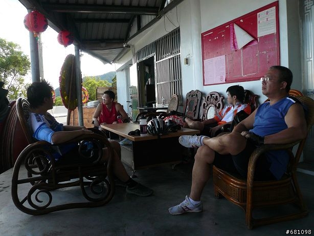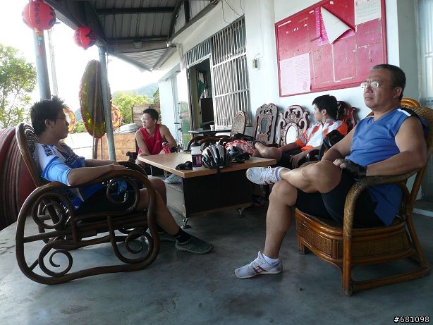 作戰報告""拯救無聊.解悶第一""中秋節特攻隊回來了人員:解悶第一特攻隊班長 小范班兵 特等兵小謝 二等兵 小李 和一等兵一名不知名的車友(抱歉小弟沒記住您的大名)以下是在新店捷運站前班長做勤前教育的過程(話說這班長初升士官 新官上任三把火.............)班長小范:開始點名班兵報告 : 應到四名 實到三名 班兵小誠未到班長小范: 為什麼沒到?班兵報告: 原因不明 可能是昨晚出特別翻滾勤務睡過頭了班長小范:.......(悶)..............班長小范:好開始勤前教育 今日的任務是機動行軍 目標是約三十公里外的坪林自行車道 此戰區一路皆坡 ...........(話沒說完 ..)天兵一號小謝舉手:報告班長 班兵發現右前方二點鐘方向有女騎士騎機車穿雨衣向本部隊逼進 作戰區可能下雨中 請示班長是否任務照舊?班長小范(氣):混帳東西!!!!!!! 咱們軍人天不怕地不怕 怎麼會被一點小雨就...........(話沒說完 .....)天兵二號小李舉手:報告班長 班兵今日領到的作戰裝備是阿里不達公路車 之前在河濱時發現根本煞不住 若是從坪林往下滑 可能直接衝到山坡下了 請示班長是否任務照舊?班長小范(沒力):混帳東西!!!!!!! 班兵三號 有什麼意見?班兵三號不知名車友(正氣澟然~~):報告 一切以班長意志為意志 服從命令 貫徹作戰計劃為身為中華民國軍人的天職 信仰三民主義 愛民親民是我們的信念 為人民安全 保家衛國 犧牲性命在所不惜.........(滔滔不絕........)班長小范:好啦好啦 轉進啦 轉進啦 轉進哪? 那轉進貓空好了.............................. 班長小范第一次帶領作戰任務 就遇到兩個天兵 真是太慘了................................一路轉進貓空 爬坡還好啦 但戰區濕度太高 眾戰士吐的吐 停的停 士氣大落----------此時七七傳來消息---什麼!!!!!!!!!!!!!!總司令將親臨督軍一時軍心大振 威震八方這阿里不達公路車也蠻給面子的 竟也給天兵小李給爬上來了(第一個上來的喔 哈哈哈)明德宮白天的風景真是蠻不錯的後來戰區情況緊急 總司令jack大哥也騎著RAC到場督軍作戰休息很久很久 部隊都快睡著了 總司令見軍心渙散 下令轉進貓空纜車站拍到此一遊照最後 班長小范和天兵小李轉進非翔車行(抱歉中秋節連休三天)再轉進景新街吃雲南美食 豬肉乾麵 豬肉巴巴絲 碗豆粉 再來二瓶汽水 這戰區營站果然夠力呀再轉進 男信車行調整自行車回到基地 里程數五十四作戰任務 成功!!!!!!!!!!!!(班長小范:混帳東西 !!!!!! 成功個什麼鳥呀! 根本沒騎到什麼車呀 虧我第一次帶隊就遇到兩個天兵......唉........)一路煞不住的阿里不達通勤公路車作戰區 明德宮班長小范 ~~~~悶~~~~~一等兵車友另一名友軍 也參加過01車隊的活動研擬作戰記畫中 根本沒人在聽班長的指示總司令JACK大哥 憂心沖沖 這樣的部隊要怎麼打仗呀???????攻占""貓空纜車站""高地有看過人家是這樣運單車的嗎?
