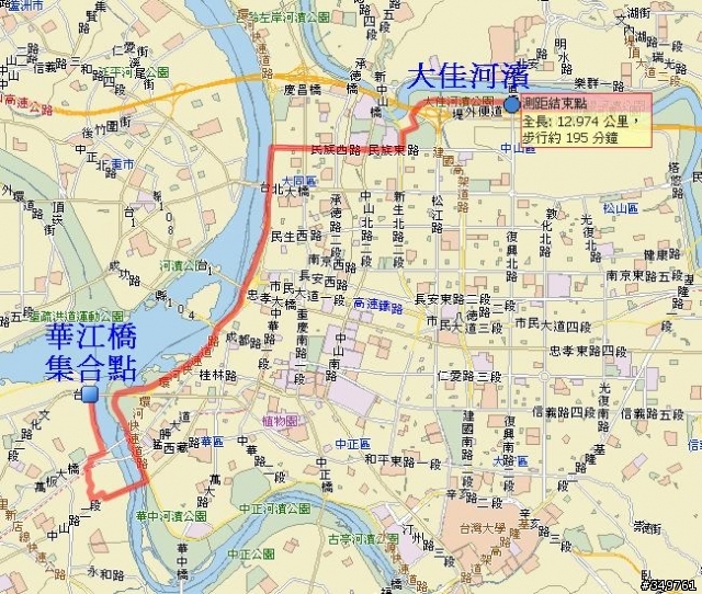 大會師繞行路線:大直橋-->基隆河南岸-->麥帥一橋-->基隆河北岸-->回到大直橋