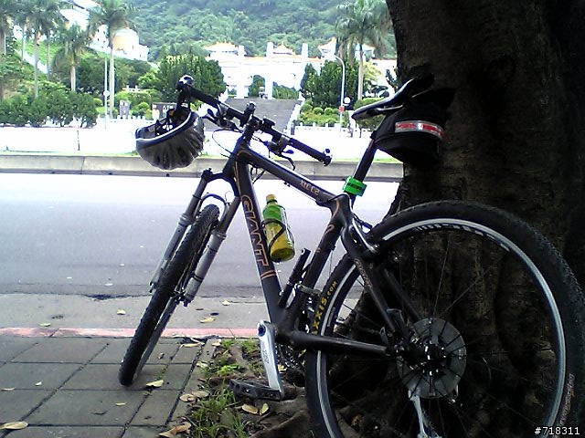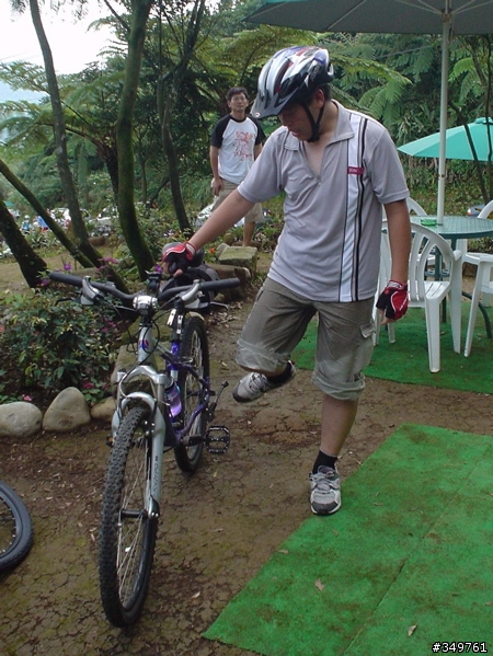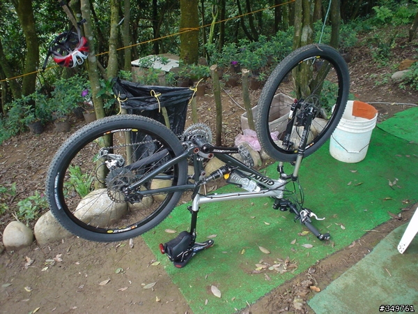 咦!車車都累到翻過來了!這是新加入車友的雙避振G牌登山車!
