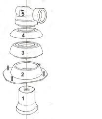 No.1 與 No.2 的合作提供萬向軸以利避震器轉動擺動外,他還要負則吸收輪胎的震動、噪音與維持行車舒適度,所以兩者是以橡膠黏合,No.1, No.2 與 No.5的結合切面圖如下: