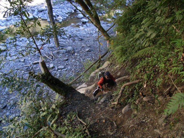 從我們預計要休息吃午餐的溪谷前往白石吊橋