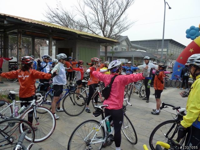 第一次騎這麼遠..一直騎在最後面..還好都有被大家撿到最後一個小時小腿都抽筋了...尤其最後10公里..好可怕坐大會的車回到中正紀念堂也沒力氣騎車..還好蘆洲有捷運..到蘆洲還只能牽車回家..因為屁股痛..要考慮去買件車褲減少屁屁負擔昨天真是
