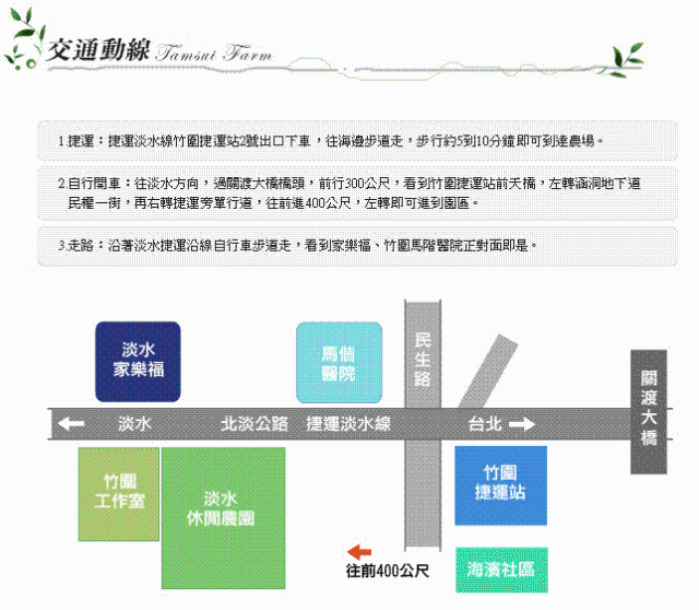 3.交通工具:腳踏車(可以由自行車道直接騎到農場)