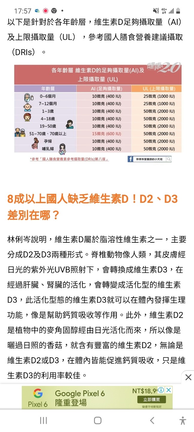 根據「國人膳食營養素參考攝取量」第八版-維生素 D