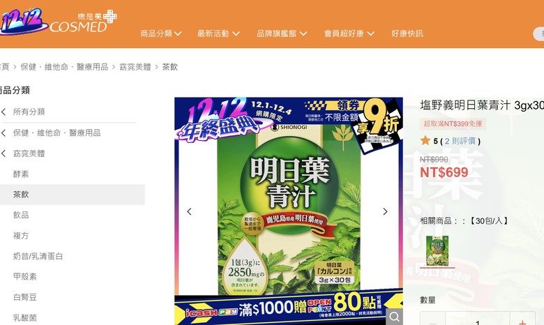 原來葉青汁是一種酵素,在台灣就買得到,下圖是康是美網站