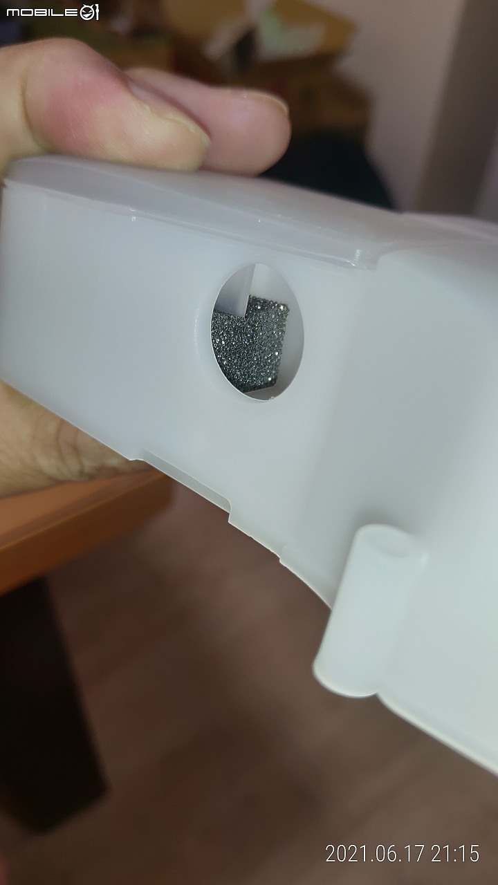 開始檢查泡棉及氣道。黑色的即是此次招回的主因。