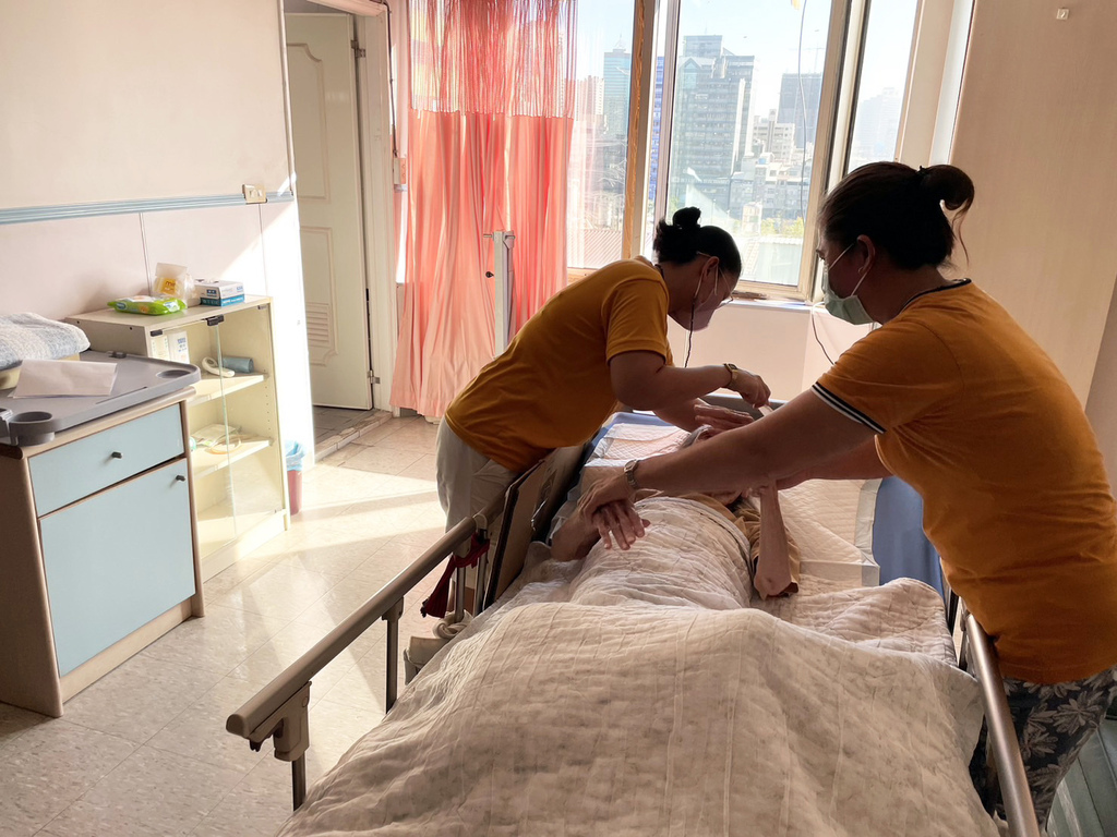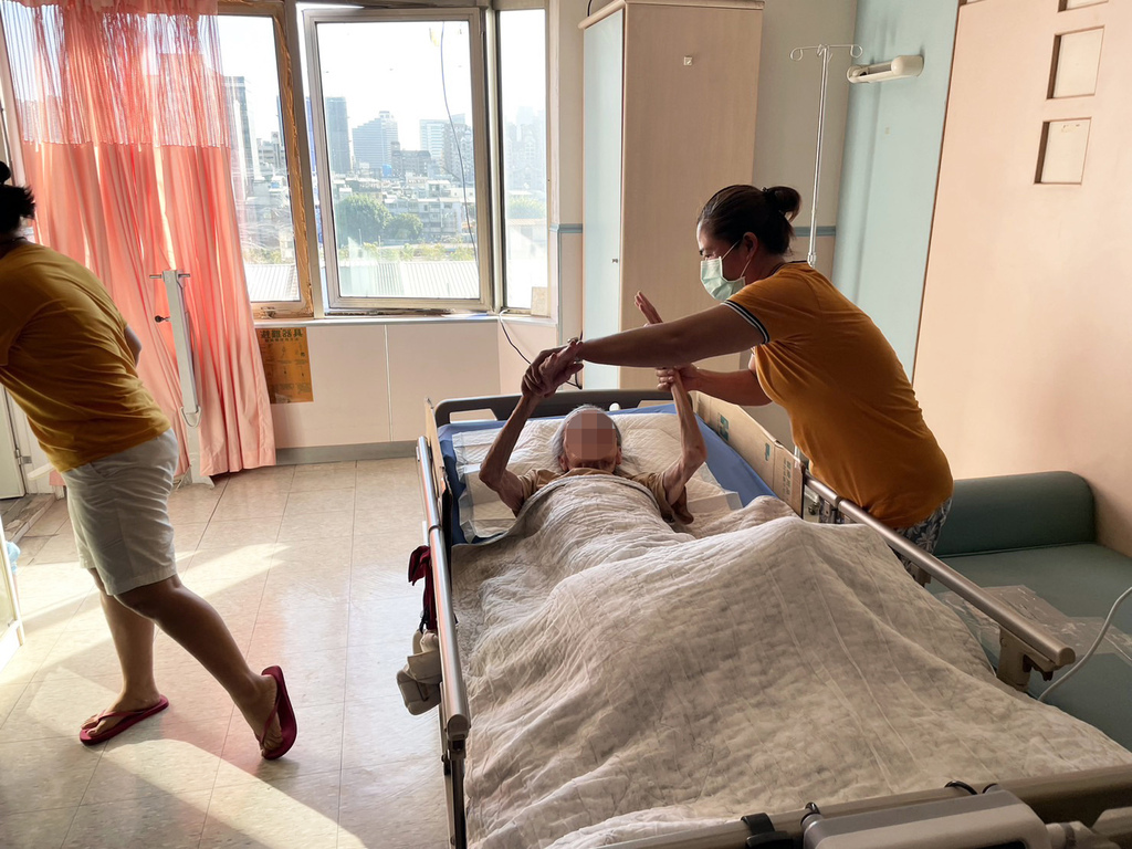 ▼每天幫忙做復健、翻身,活動阿嬤的身體,這樣能減緩肌肉萎縮、比較不會長褥瘡