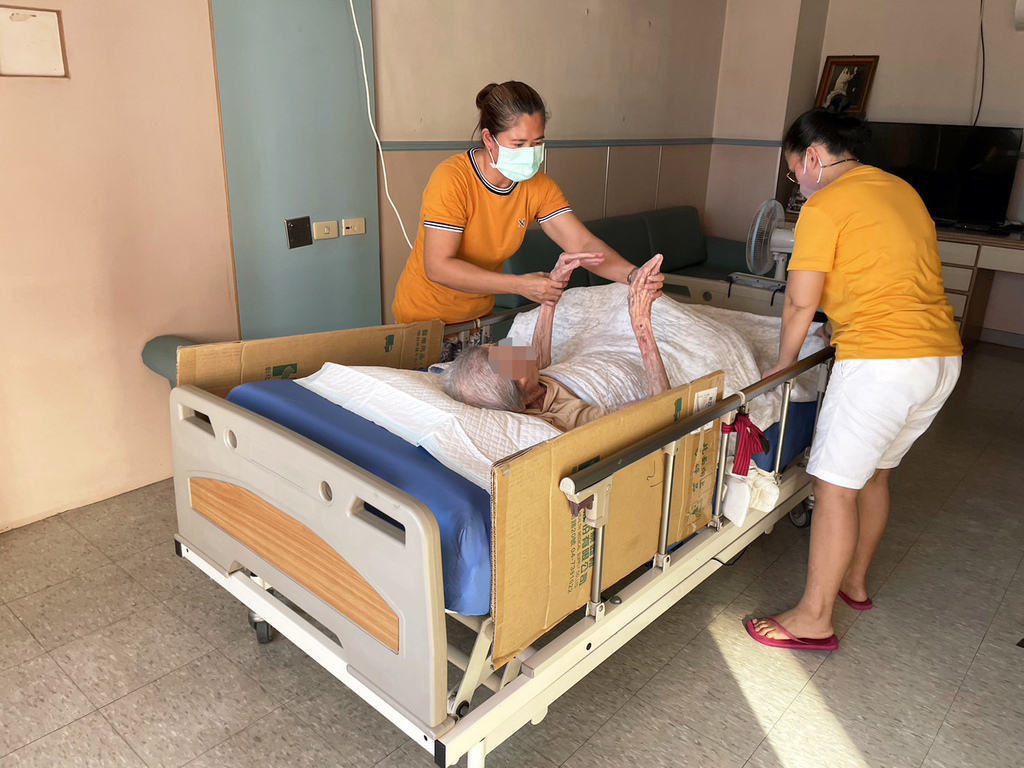 ▼我們申請兩名菲律賓籍的外籍看護,貼身照顧阿嬤的生活起居