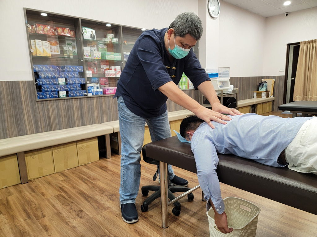 所以洪院長透過整脊手法將原本錯位的地方調整回來,院長施力的時候聽到很響的喀!一聲,但是一點都不會痛,反而有種放鬆、回復自然的感覺