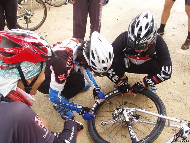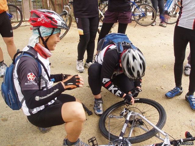 Jungle的新車後輪沒氣了,大家正在輪流打氣