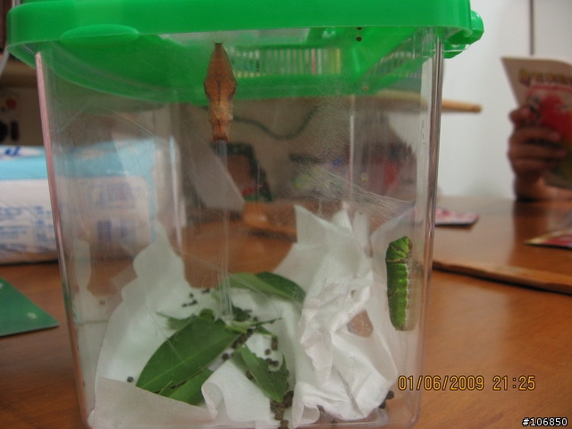 上次0524的抓毛毛蟲之旅,抓到五隻毛毛蟲。後續報告一下五隻死了2隻(這2隻小毛毛蟲可能被螞蟻抓去了),另外三隻成功結蛹了↓在去墾丁第二天晚上,第一隻毛毛蟲結蛹了↓經過15天終於變成蝴蝶了↓你看DoDo好快樂喔!↓準備放飛了,蝴蝶祝你好運囉!同場加映一個像台灣的荷包蛋這可是我在6月2日早上作早餐時煎出來的