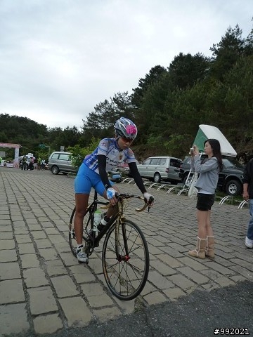 第二名也到嚕~雖然落後第一名5分鐘,但還是抽一下車的啦! (應該是KTM一哥)