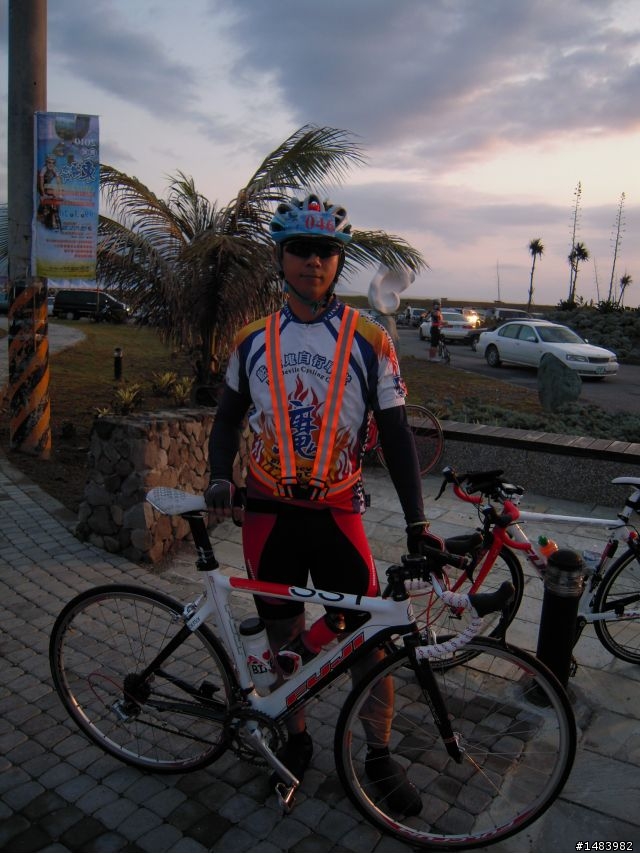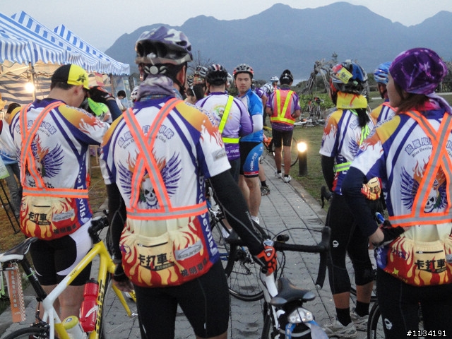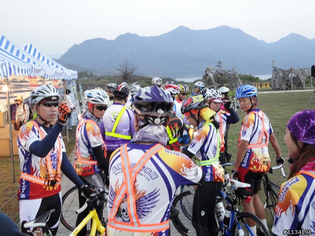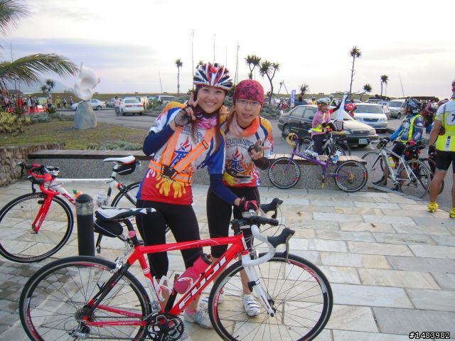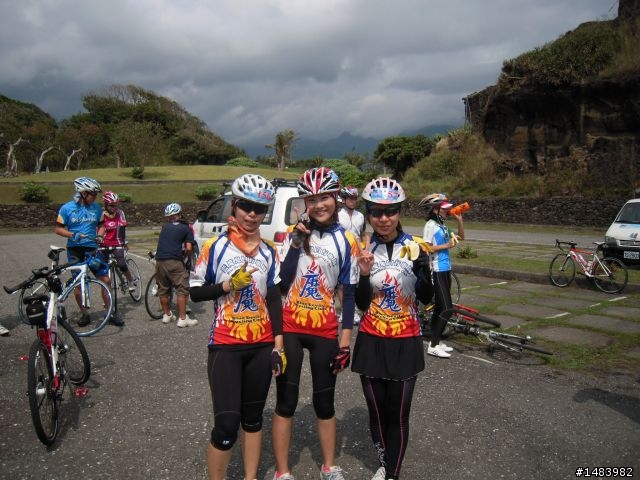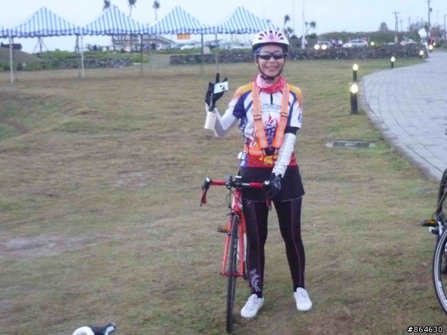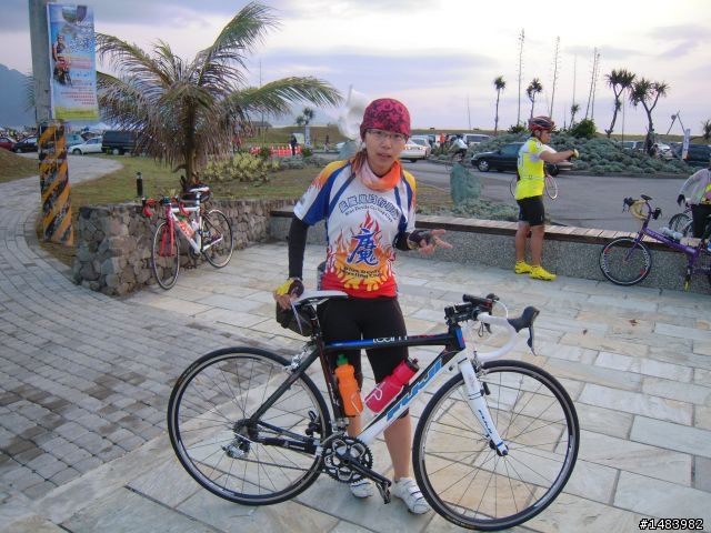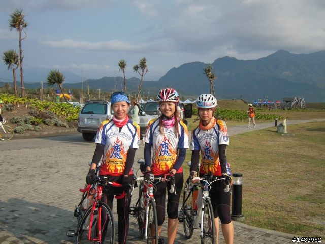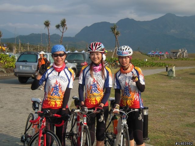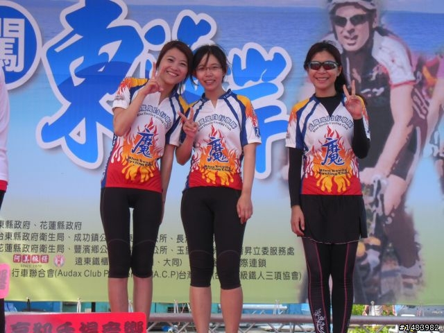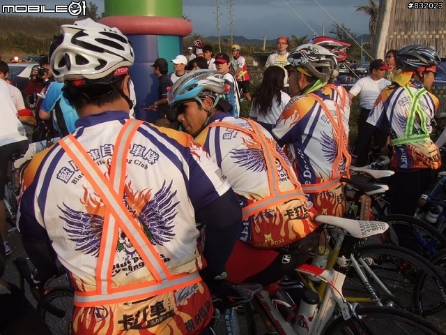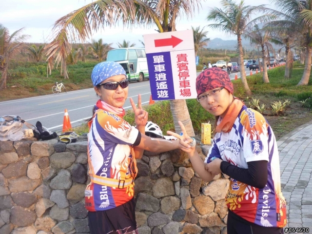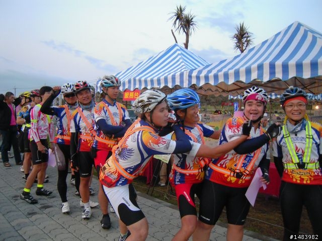 2010.3.20 勇闖東海岸 瘋100休閒組 (藍魔鬼女生公關組) 瘋200勇士組 (除了勇腳蕭醫師之外的其他男生組)半夜坐著遊覽車出發, 到台東, 天都還沒全亮呢!拍下這張: 有山有海, 詭異的天色, 原來是這硬到不行的預兆啊~ (後面看得到一群些嘻嘻哈哈的傻瓜...)超值100K贈品: (水壺還是捷安特的,讚啦! )報到...天色還沒全亮..有人只睡兩三個小時, 有人根本沒睡...這照片排第一的果然是第一個回來小A您站錯位置了啦...一群人嘻嘻哈哈,聽說後來騎到抽筋的抽筋,腳傷的腳傷...果然是..能笑的時候就別哭啊 (這是什麼鬼話啊)個人照來囉!沒穿著吊帶車褲, 也得裝個樣子, 哈!國文:看我的啦!小A您的姿勢會不會太嬌媚了啊...您跟J爺之間...這張...嗯,小龍你有申請肖像權嗎?藍魔鬼女生組 (除了騎車, 一整天都在做公關啊...下面看照片就知道)出發囉...對公路車還不熟...沿路騎車不太敢拍照 (話說...騎到後來, 沿路都在罵髒話,也沒有拍照的心情 = =")所以這也是..能笑的時候就別哭的最佳寫照...風景秀麗到不行啊~拍拍拍 我拍拍拍拍完後就是...追追追 我們追追追...>"<只停著拍沒多久, 就被很多很多人追過去了, 害我們後來都不太敢再停車拍照,浪費了那些美景啊...因為穿著醒目的車衣, 又都騎公路車...沿路真的很吸睛喔~所以...也交了不少朋友(羞)有這一群愛開玩笑,路上會跟我們互相喊加油的車友(說要跟在我們後面讓我們破風...這...想太多了啦...)另一群來自埔里?的車友,也要求我們入鏡~ (有沒有這麼受歡迎啊 哈!)超厲害的拉拉, 雖然後來因為邊騎邊拍, 大腿拉傷了, 但還是勇猛的騎完全程啊...1011硬斗的山路...回程大到令人抓狂的逆風...後來有一段時間,我騎到抓狂, 完全不想說話...腦袋裡只有...罵到一個不想停的髒話於是, 在距離終點十公里左右,當一整個狀況輕鬆到不行的筱涵說要先騎練速度的時候,相信拉拉也跟我一樣在心裡大喊著:去吧!!去吧!!快海放我們!!不要在我們騎到快起肖的時候,再露出那個討人厭的輕鬆笑臉啦!!於是,在筱涵海放我們後, 我們倆個肉腳,就再也不顧忌的...沿路問候每一個上坡,並幹譙那不知道在吹什麼的大逆風!(中間以馬賽克處理)總算看到終點, 倆個傻蛋跟瘋了似的大聲喊YA (根本是瘋子)並以僅存的力氣暴衝..於是...在剩不到100公尺的時候, 熊熊沒力...最後用超龜的速度 抵達終點...(嗯, 更正..根本是笨蛋)但總算在五個半小時完賽,聽說還排在中段喔!三台辛苦的車車, 也累癱了~就說...藍魔鬼的車衣很醒目吧...所以我們三個女公關 喔不 女勇腳..在莫名的情況下 被邀請上台去做領獎的表演...也跟不認識的車友,借了一頂很搞怪的稀有安全帽拍照:羨慕嗎? 其實這些都還好因為還有....爽到不行的按摩...(照片不放,因為怕過太爽被其他人打)感謝海洋大學的實習學生們, 免費又舒服的按摩按到我們睡著..還溫柔的叫醒我們....羨慕吧! 下次記得要報100K呦!然後,在期待男生組回來的期間,把握時間拍照我的車車..終於可以讓它露臉了...(花了不少小朋友,總得有個什麼出來才好亮相啊...)一邊拍照哈拉..一邊等著200K的勇腳們光榮回來等啊等 等啊等 ....從下午一點半...等到晚上七點多一開始連上個廁所都不敢 深怕錯過迎接大家回來的機會於是..我們三個 就這樣 從第一個200K完賽的勇腳開始..列隊歡迎.......(迷錯..真的是列隊)歡迎到有人以為我們是工作人員歡迎到警察伯伯也跟我們混熟哈拉歡迎到規勸隔壁伯父伯母該給他們家兒子買台好一點的車 (嘖)都一直堅守崗位...還跟旁邊的人笑說,這群人一定是吃太大...不知道吃到哪邊去了..在一台又一台 一群又一群車友抵達, 然後又看到救護車出動...我們在心裡,從暗罵變成擔心...並且真心希望你們是因為吃太大而延誤啊!!等到天都暗了...趕快跑去拔車子上的手電筒來照明.......並且互相調侃自己怎麼看像燈塔一樣...但那時, 也只有我們自己心裡知道, 有多期待看到你們這群人平安出現啊!於是, 終於等到藍魔鬼第一個成員蕭醫師回來, 我們只能用不停的尖叫歡迎! (只差沒流淚了...)那時才打聽到你們應該還有15分鐘差距 (雖然後來證實..是15分鐘的N倍)終於等到大家回來...我們三個已經在入口或坐或站超過六個小時了... (中間還幫忙用手電筒引導選手入場)看到大家的一瞬間, 心情的激動 真是很難用言語形容啊!藍魔鬼果然是一群人浩浩蕩蕩的回來! 除了感動 還是感動啊!以下照片證實在心情激動下...很難拍出什麼好照片啊 (拉拉這些是妳拍的還是我拍的啊?)你們大家都很棒啊! (A大更棒,膝蓋痛到都不能走了,叫大家先回來, 最後還是騎回完賽, 超令人敬佩的啦!)以上, 公關組 (喔不,是100K女子組)安琪拉報導(因為照片在我手上,不上來交代這些說什麼也不行啊...看拉拉跟筱涵,有沒有要再補充的喔! )