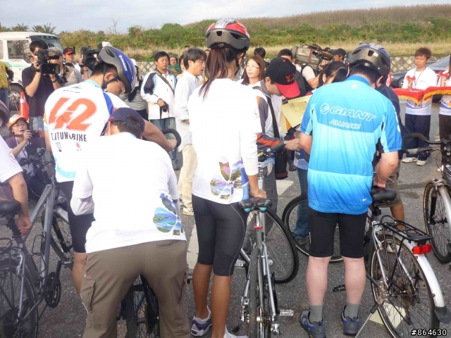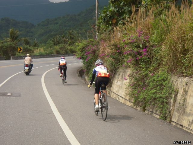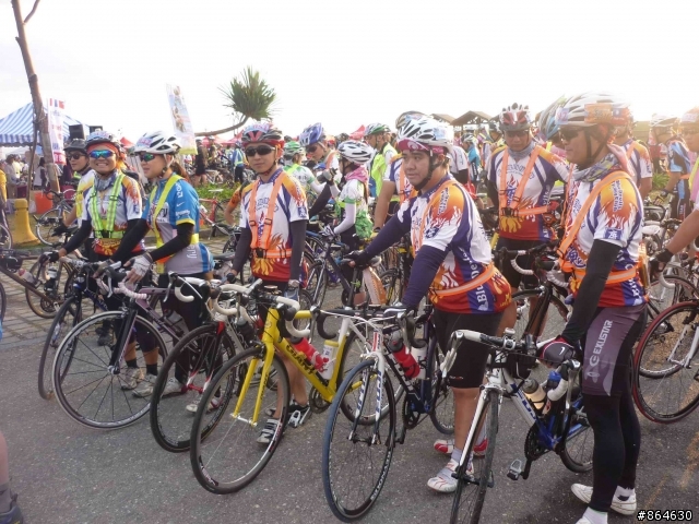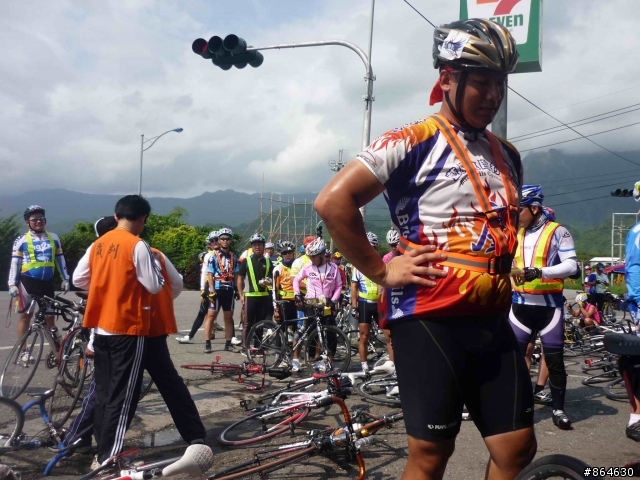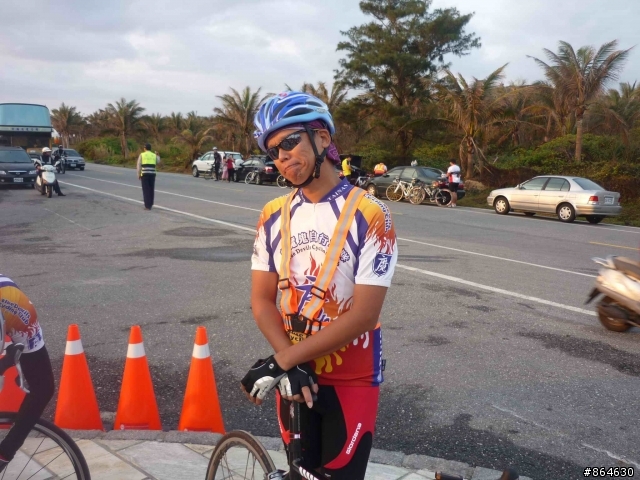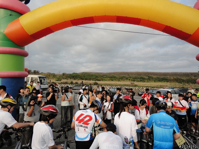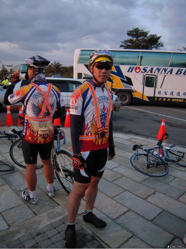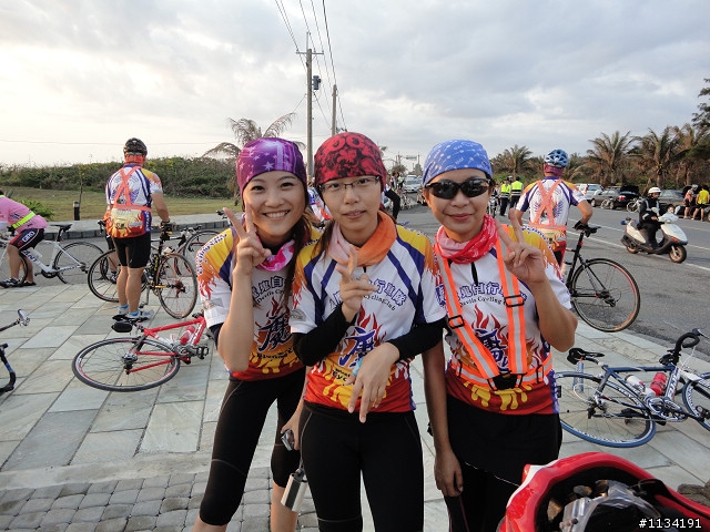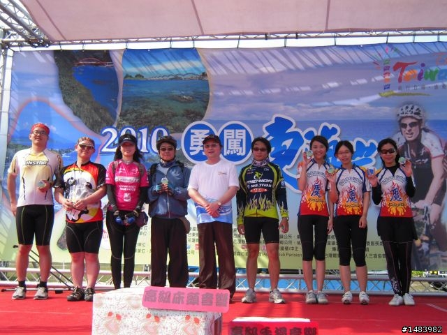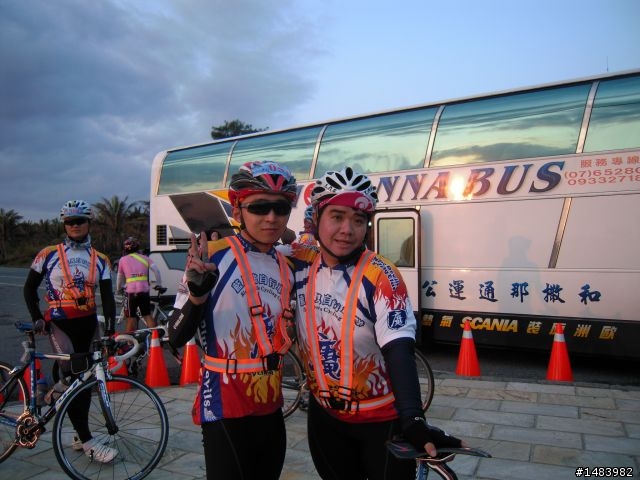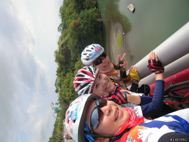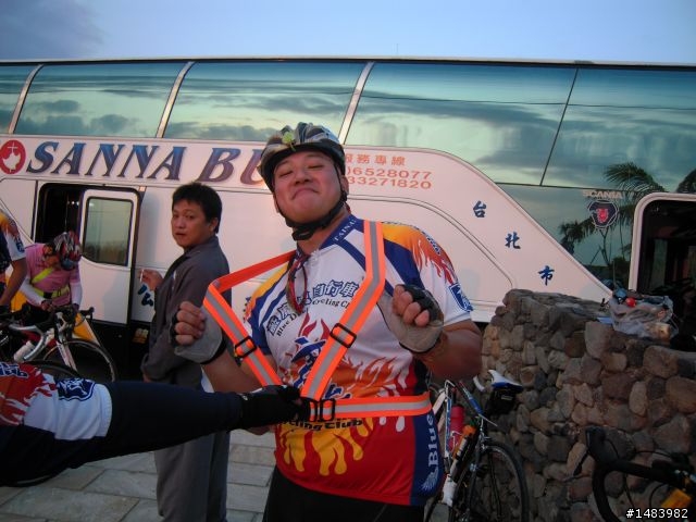 2010.3.20 勇闖東海岸 瘋100休閒組 (藍魔鬼女生公關組) 瘋200勇士組 (除了勇腳蕭醫師之外的其他男生組)半夜坐著遊覽車出發, 到台東, 天都還沒全亮呢!拍下這張: 有山有海, 詭異的天色, 原來是這硬到不行的預兆啊~ (後面看得到一群些嘻嘻哈哈的傻瓜...)超值100K贈品: (水壺還是捷安特的,讚啦! )報到...天色還沒全亮..有人只睡兩三個小時, 有人根本沒睡...這照片排第一的果然是第一個回來小A您站錯位置了啦...一群人嘻嘻哈哈,聽說後來騎到抽筋的抽筋,腳傷的腳傷...果然是..能笑的時候就別哭啊 (這是什麼鬼話啊)個人照來囉!沒穿著吊帶車褲, 也得裝個樣子, 哈!國文:看我的啦!小A您的姿勢會不會太嬌媚了啊...您跟J爺之間...這張...嗯,小龍你有申請肖像權嗎?藍魔鬼女生組 (除了騎車, 一整天都在做公關啊...下面看照片就知道)出發囉...對公路車還不熟...沿路騎車不太敢拍照 (話說...騎到後來, 沿路都在罵髒話,也沒有拍照的心情 = =")所以這也是..能笑的時候就別哭的最佳寫照...風景秀麗到不行啊~拍拍拍 我拍拍拍拍完後就是...追追追 我們追追追...>"<只停著拍沒多久, 就被很多很多人追過去了, 害我們後來都不太敢再停車拍照,浪費了那些美景啊...因為穿著醒目的車衣, 又都騎公路車...沿路真的很吸睛喔~所以...也交了不少朋友(羞)有這一群愛開玩笑,路上會跟我們互相喊加油的車友(說要跟在我們後面讓我們破風...這...想太多了啦...)另一群來自埔里?的車友,也要求我們入鏡~ (有沒有這麼受歡迎啊 哈!)超厲害的拉拉, 雖然後來因為邊騎邊拍, 大腿拉傷了, 但還是勇猛的騎完全程啊...1011硬斗的山路...回程大到令人抓狂的逆風...後來有一段時間,我騎到抓狂, 完全不想說話...腦袋裡只有...罵到一個不想停的髒話於是, 在距離終點十公里左右,當一整個狀況輕鬆到不行的筱涵說要先騎練速度的時候,相信拉拉也跟我一樣在心裡大喊著:去吧!!去吧!!快海放我們!!不要在我們騎到快起肖的時候,再露出那個討人厭的輕鬆笑臉啦!!於是,在筱涵海放我們後, 我們倆個肉腳,就再也不顧忌的...沿路問候每一個上坡,並幹譙那不知道在吹什麼的大逆風!(中間以馬賽克處理)總算看到終點, 倆個傻蛋跟瘋了似的大聲喊YA (根本是瘋子)並以僅存的力氣暴衝..於是...在剩不到100公尺的時候, 熊熊沒力...最後用超龜的速度 抵達終點...(嗯, 更正..根本是笨蛋)但總算在五個半小時完賽,聽說還排在中段喔!三台辛苦的車車, 也累癱了~就說...藍魔鬼的車衣很醒目吧...所以我們三個女公關 喔不 女勇腳..在莫名的情況下 被邀請上台去做領獎的表演...也跟不認識的車友,借了一頂很搞怪的稀有安全帽拍照:羨慕嗎? 其實這些都還好因為還有....爽到不行的按摩...(照片不放,因為怕過太爽被其他人打)感謝海洋大學的實習學生們, 免費又舒服的按摩按到我們睡著..還溫柔的叫醒我們....羨慕吧! 下次記得要報100K呦!然後,在期待男生組回來的期間,把握時間拍照我的車車..終於可以讓它露臉了...(花了不少小朋友,總得有個什麼出來才好亮相啊...)一邊拍照哈拉..一邊等著200K的勇腳們光榮回來等啊等 等啊等 ....從下午一點半...等到晚上七點多一開始連上個廁所都不敢 深怕錯過迎接大家回來的機會於是..我們三個 就這樣 從第一個200K完賽的勇腳開始..列隊歡迎.......(迷錯..真的是列隊)歡迎到有人以為我們是工作人員歡迎到警察伯伯也跟我們混熟哈拉歡迎到規勸隔壁伯父伯母該給他們家兒子買台好一點的車 (嘖)都一直堅守崗位...還跟旁邊的人笑說,這群人一定是吃太大...不知道吃到哪邊去了..在一台又一台 一群又一群車友抵達, 然後又看到救護車出動...我們在心裡,從暗罵變成擔心...並且真心希望你們是因為吃太大而延誤啊!!等到天都暗了...趕快跑去拔車子上的手電筒來照明.......並且互相調侃自己怎麼看像燈塔一樣...但那時, 也只有我們自己心裡知道, 有多期待看到你們這群人平安出現啊!於是, 終於等到藍魔鬼第一個成員蕭醫師回來, 我們只能用不停的尖叫歡迎! (只差沒流淚了...)那時才打聽到你們應該還有15分鐘差距 (雖然後來證實..是15分鐘的N倍)終於等到大家回來...我們三個已經在入口或坐或站超過六個小時了... (中間還幫忙用手電筒引導選手入場)看到大家的一瞬間, 心情的激動 真是很難用言語形容啊!藍魔鬼果然是一群人浩浩蕩蕩的回來! 除了感動 還是感動啊!以下照片證實在心情激動下...很難拍出什麼好照片啊 (拉拉這些是妳拍的還是我拍的啊?)你們大家都很棒啊! (A大更棒,膝蓋痛到都不能走了,叫大家先回來, 最後還是騎回完賽, 超令人敬佩的啦!)以上, 公關組 (喔不,是100K女子組)安琪拉報導(因為照片在我手上,不上來交代這些說什麼也不行啊...看拉拉跟筱涵,有沒有要再補充的喔! )