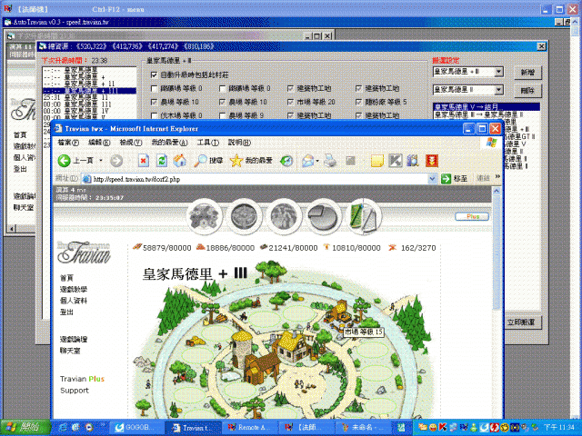 hector28 wrote:不過綠洲被攻擊時該綠...(恕刪) 瞭解,下版會增加偵測綠洲攻擊Nouni wrote:1. 村莊資料常常錯誤,尤其是多村(30村)的時候2. 讀取完後有些村的資料會不完全,如圖3. 如果發生狀況二的話,自動搬運的功能就會失效以下是二個建議1. 建議可以設定升級的等級上限2. 建議可以設定升級順序 1. 目前v0.33版本已有修正2. 因為你沒有蓋市場目前有考慮提供自訂優先權,加入時間未定前面提過很多次了,之後我就不再回了