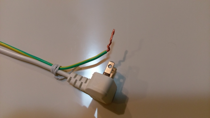 日本有一種插座,接地不是第三孔,而是鎖在面板上的螺絲上,所以才會有這種電源線而不是三腳。