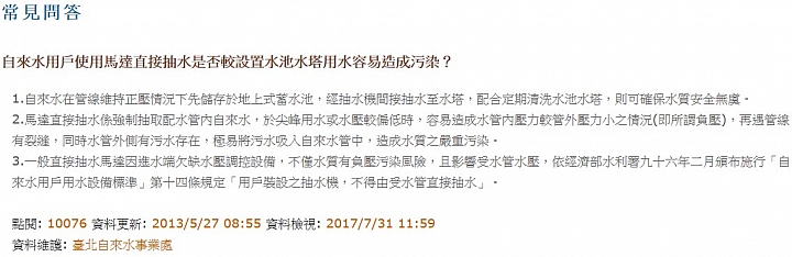 這樣至少水也比較乾淨,不用經過水塔給汙染,