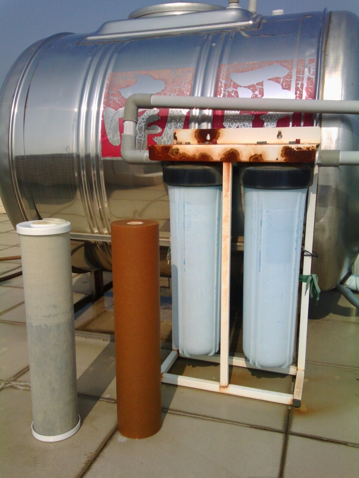 在高雄住了三十幾年了,所使用的水跟大家一樣----自來水,繳的費率都一樣,但卻是這種水質水塔裝了兩支大胖濾心,pp +活性炭,使用半年的濾心是這種顏色雖然裝了水塔濾水器,但熱水器每兩年會故障,本以為是熱水器品質不良,索性換熱水器結果一樣故障,找人來修說水盤卡了水垢是水質太髒了,於是在熱水器前又裝了一道覆磷酸鹽濾心廚房水槽下也是跟大家一裝個RO 逆滲透不懂一樣住在臺灣繳一樣的水費,為何每年我得額外付這麼大的成本換濾心呢