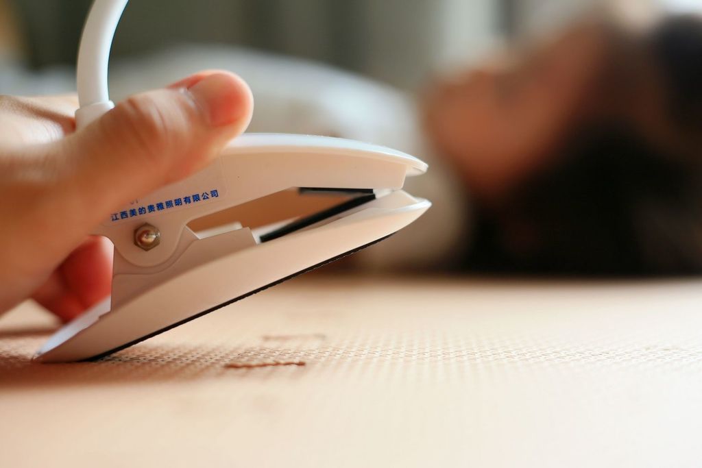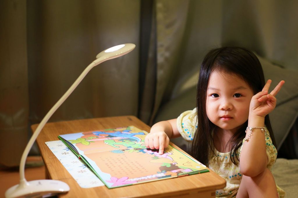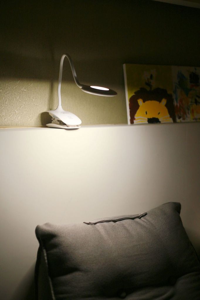 而且還可將燈頸壓下讓光源更集中,即使田心睡在旁邊也不會被影響到