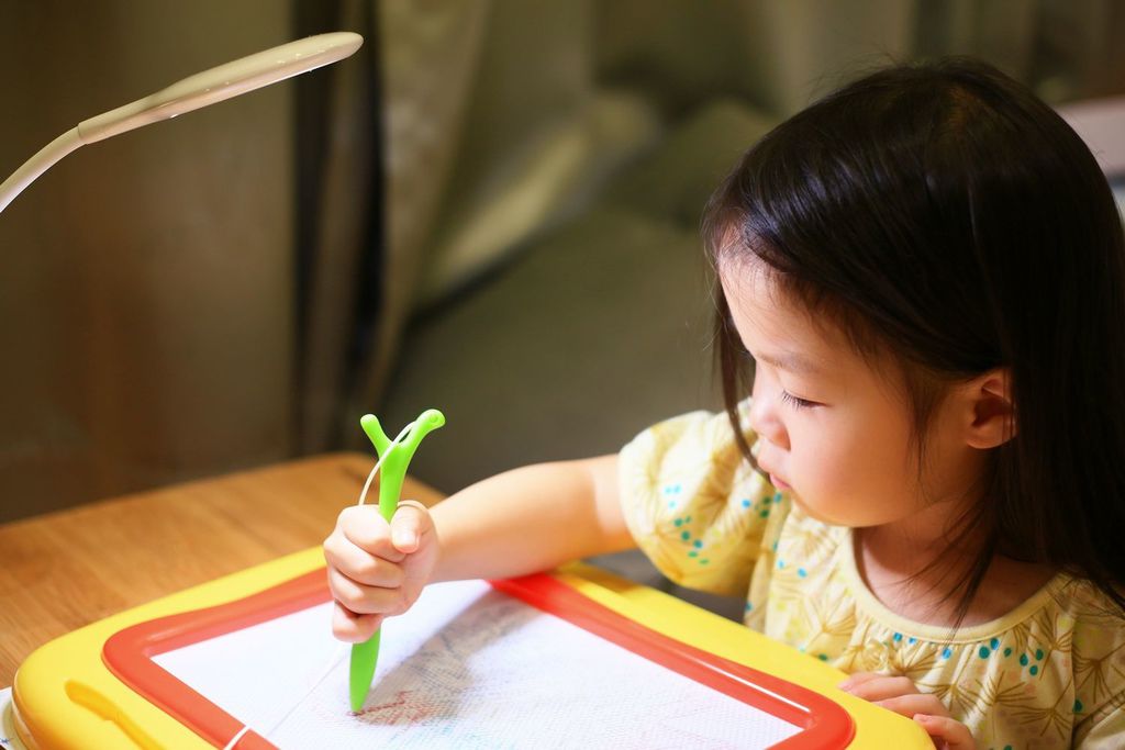 晚上幫田心洗好澡後就開著燈讓她自己畫畫