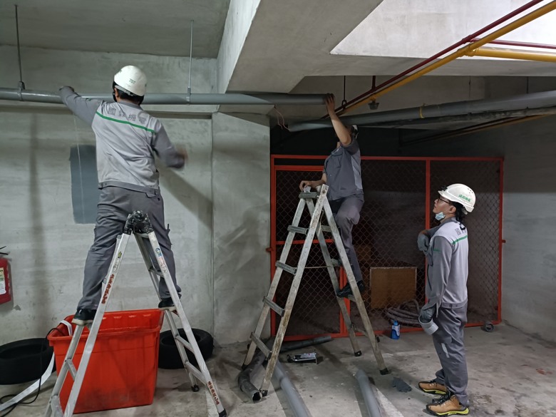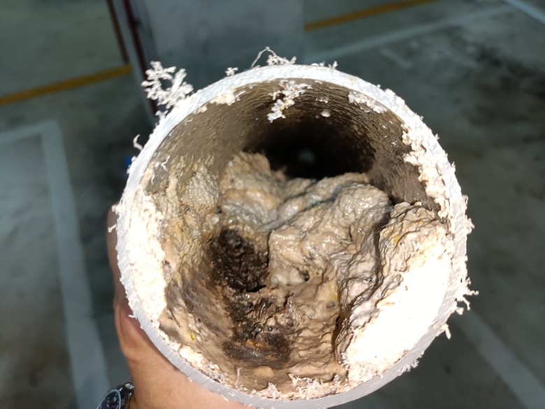 我有遇過類似問題,這應該是因為你這幾個排水孔是共管的,而廚房的排水孔高度比較低,然後共管的後端有阻塞,大量排水宣洩不及,他就會從廚房先冒出來,然後再慢慢消掉,只要你找出共管阻塞處處理掉,一切就會恢復正常了,我之前是塞在共管的儲水彎。