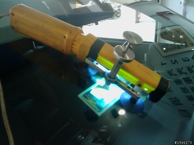 感謝各位大大的建議喔!後來決定先補補看.事不宜遲,早上就趕快到羅斯福路五段.(應該跟ZAPPER大大推薦的同一家)這間是專業的汽車玻璃修補.在修補前有先將洞口磨大.以利修補液的進入.工具也較市面DIY套件專業許多.據師傅表示重點是要能補到深層的部位才能預防繼續龜裂.修補後只剩一個小白點.據師傅表示那個白點為硬化後的修補液.修補液材質沒玻璃硬,所以時間久了白化的情形會嚴重一點.因為忘記拍補前照片及補後照片所以就貼些過程的照片請各位看倌見諒.晚點再補拍修補後的照片.(希望能拍的出來)