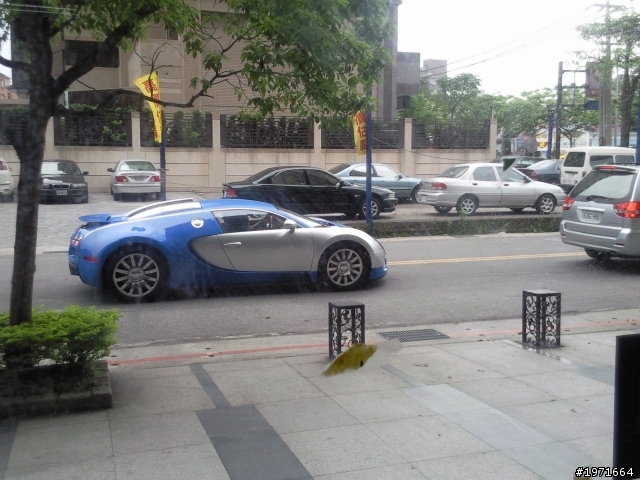 話說今天下午4點多在內湖民權東路六段看到對向衝出來一輛藍銀雙色塗裝的跑車, 原先只聽到聲音, 我心裡想大概又是 Lamborghini or Ferrari or Aston Martin 吧,因為看到太多次了,結果卻衝出來一輛將軍大的Bugatti Veyron, 下巴差點沒掉下來, 行車紀錄器礙於有矮樹的分隔島沒錄到, 不知道有其他人今天有獵到的嗎?