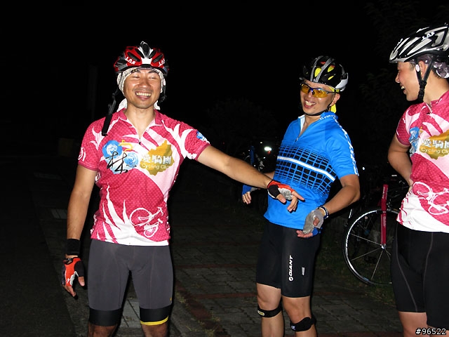 原來大家是走珠海路阿我以為還是爬泉源路上惇敘跟David 拿完車衣後回家扒了兩口飯用最快的速度換裝想說各位會在惇敘對面的涼亭休息用最快的速度爬行義路到敦敘在涼亭等10分鐘不到人划下去關公廟等 也等不到就回家了問我為什麼不直接爬中正山因為我沒裝前車燈阿林北車衣真是讚~~~視覺性一流感謝幹部們的付出