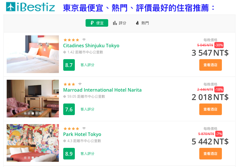 iBestiz還有提供當地國家最便宜的住宿及最熱門的酒店促銷推薦,介面挺完美的,所以這個是我目前使用最多的機票查詢網頁❤️