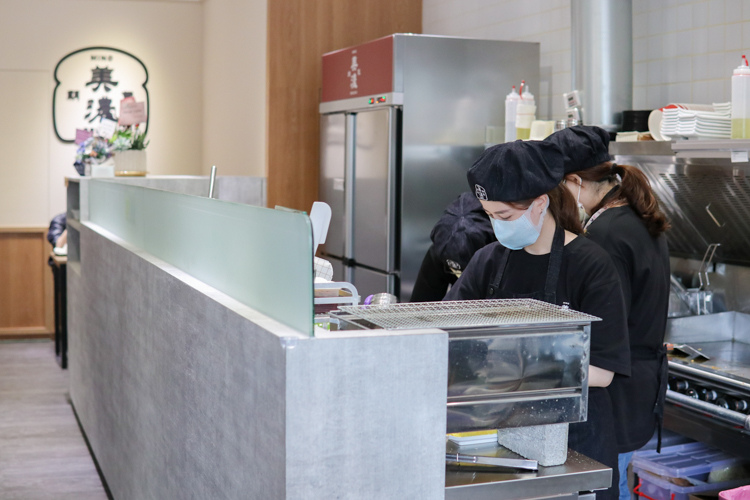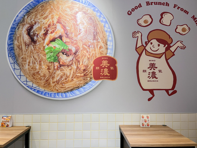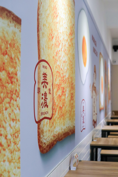 店內內用空間較為狹長,旁邊的牆面上有著滿滿的朝氣美濃的插畫,