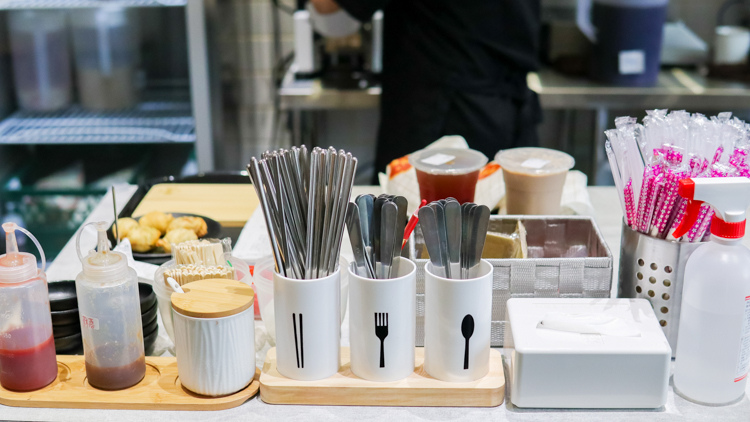 半自助的點餐方式,餐點的佐料跟餐具都擺放在櫃台,有需要的朋友可以自行前往取用哦!