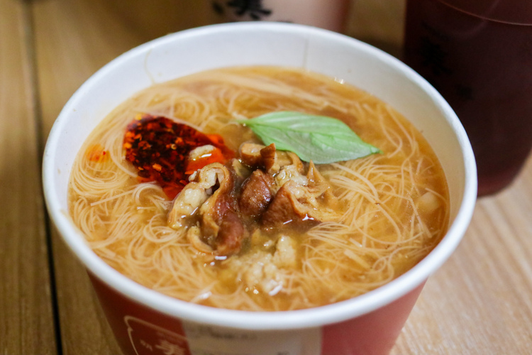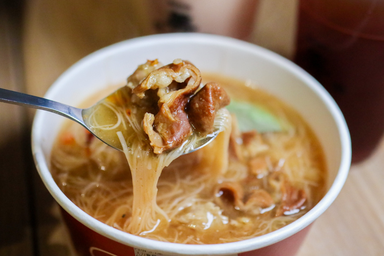 伴著肉與些微辣椒,吃起來味道帶點香辣卻又不會搶了麵線的香味。