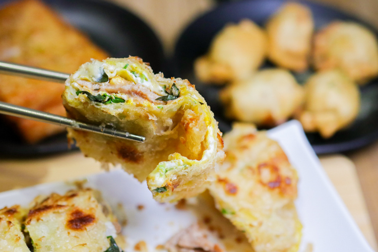 很難得在早餐店看到炸餃子這個選項,所以我們就加點了這個小點心。