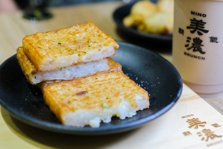 朝氣美濃的蘿蔔糕,表皮煎得洽洽的,但是裡面咬起來的口感卻很濕潤,