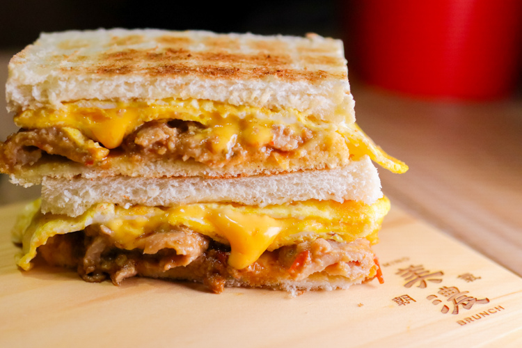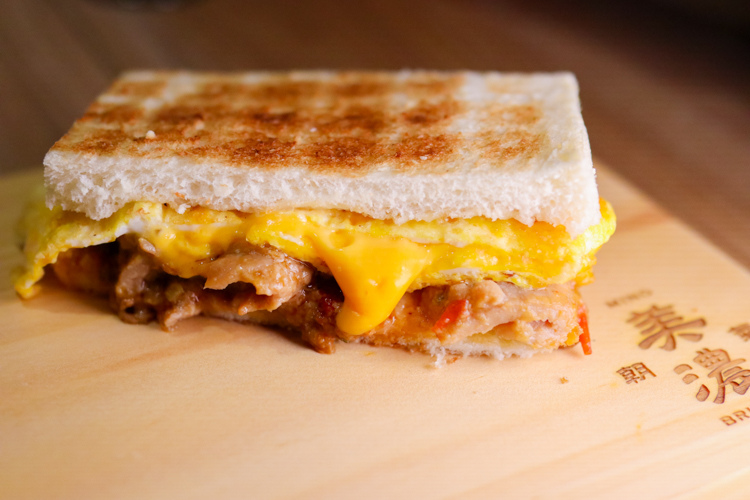 吐司烤的略帶焦脆,中間抹了剁椒與現烤的烤肉,搭配上起司跟雞蛋香氣,