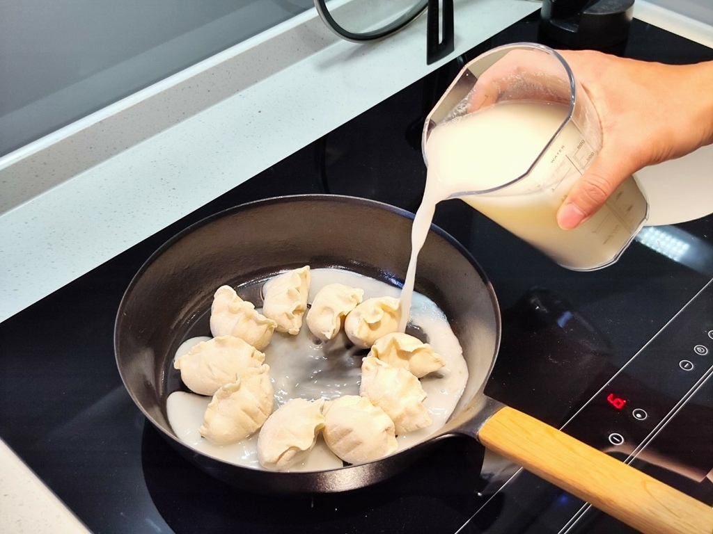 前面提到我自己煎餃喜歡粉的比例高一點煎的焦香酥脆一點,真的看上去就讓人流口水,特別是手工捏花的造型不管是煎還是煮都還是能有美美的形狀,視覺味覺都很棒。