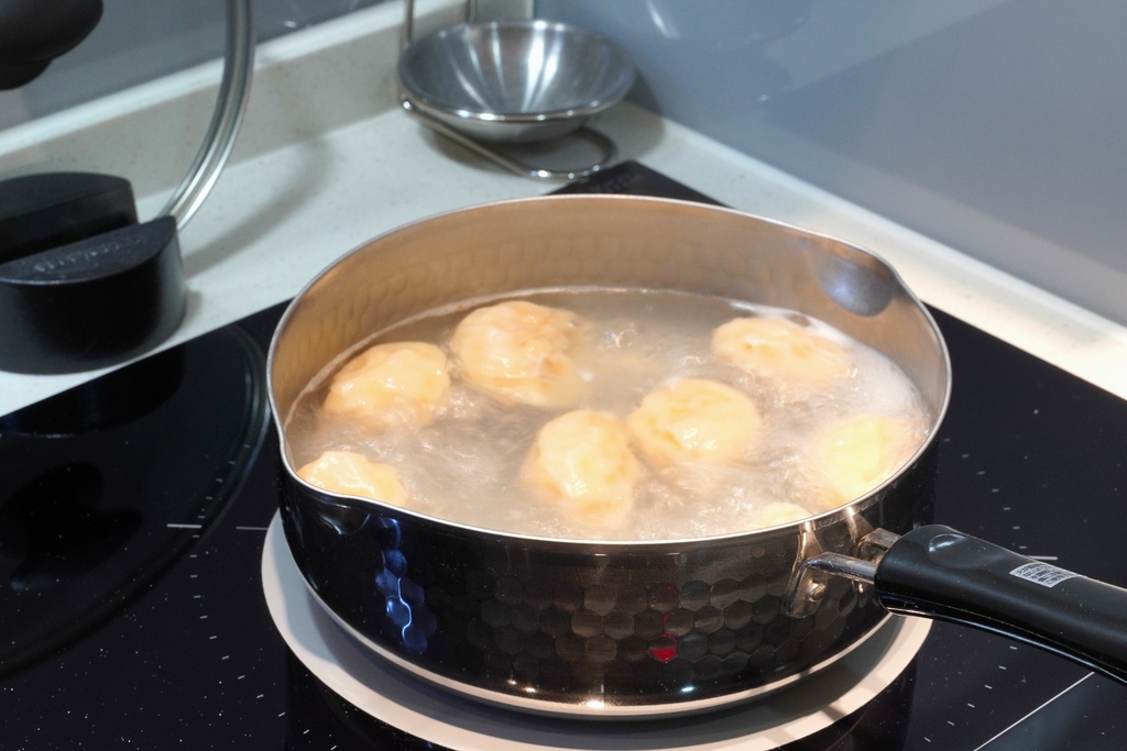 冷凍水餃一樣也是直接水滾後無需解凍下水煮大約5-7分鐘,看餃子浮起來就可以起鍋啦~是不是真的超方便的,十分鐘內就可以準備好美味的料理,真的是媽媽的好幫手。