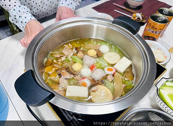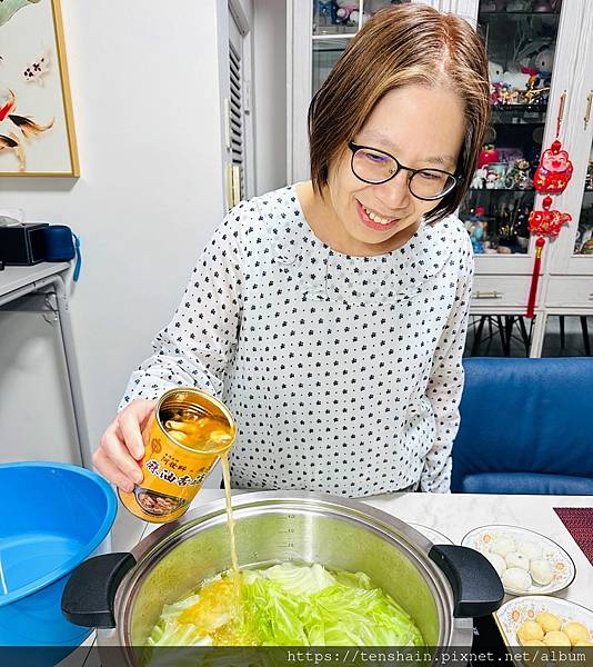 我覺得用麻油杏菇雞罐頭來煮火鍋,最方便的就是湯底可自行控制,例如我們只有兩人用餐,想吃清淡一點,只加一罐就夠味。若是口味較重,或是用餐人數較多,就多加幾罐,濃淡由人。