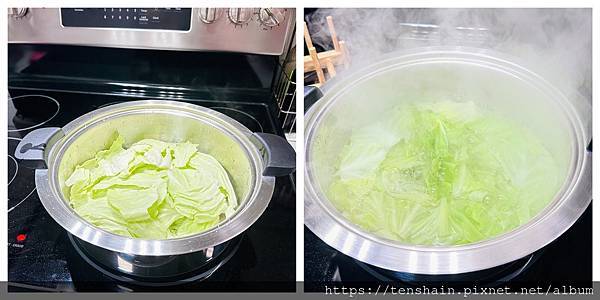 為了節省時間,我喜歡先在電爐上把高麗菜煮軟,再端到餐桌上,用電磁爐邊煮邊吃。