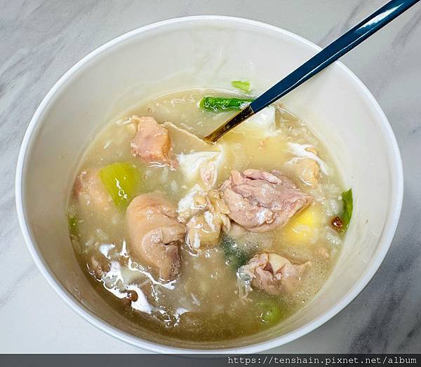 「叮咚!」一聲,時間到!打開微波爐,一碗香噴噴的人蔘糯米雞,正式出爐!來看看碗裡的料有多少?你敢相信這麼多料雞肉粥,竟然只要 NT$129 元嗎?