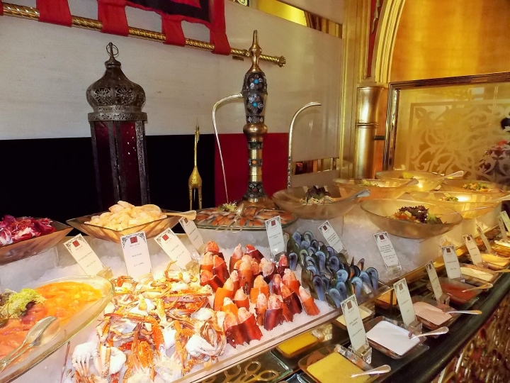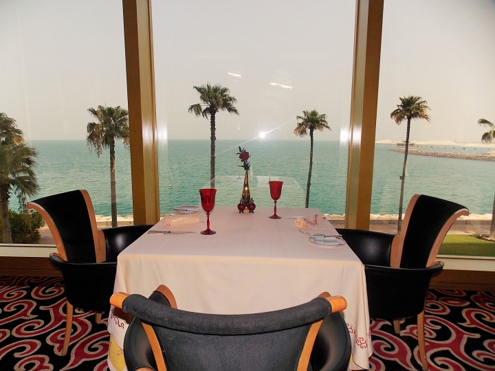 本來設計的基調要走白色路線但酋長王說沙漠視野單調希望色彩越鮮豔越豐富越好但又不要太俗豔於是成了今天的模樣介紹完 該用餐了在侍者的引領無敵海景求婚必中桌任我挑選問題是孩子都這麼大了飽滿豐美的龍蝦大螯鮮彈味美人間極品~