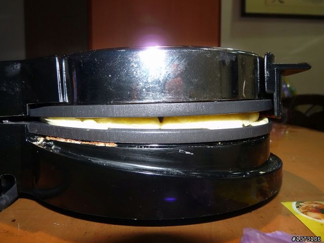 很快的,就會看到蓋子被膨脹的鬆餅頂起來