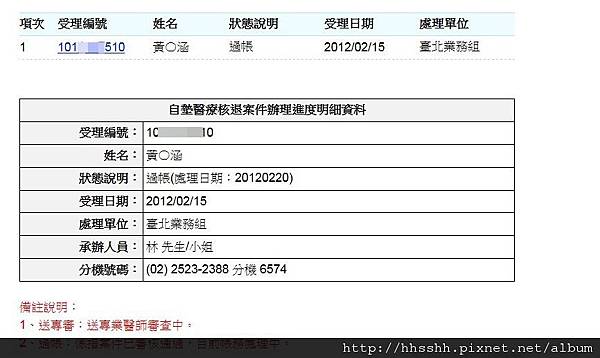 把表格填後寄出後還可以在這個網頁查申辦的進度~