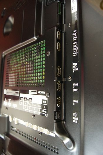 SD卡插槽、USB1~2連接埠、HDMI1~3個、數位聲音輸出(Digital audio out)設計在電視左側還蠻方便尋找的,之前有用過幾台大電視,雖說插槽也是設計在左右側,但是很中間,非常的難找到自己要的插槽也不好插。