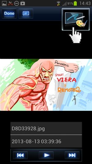 如果有在手機或平版上裝上VIERA REMOTE 2,在程式的右上按下更新即可直接看到電視上正在畫的圖,真的很有趣!!!