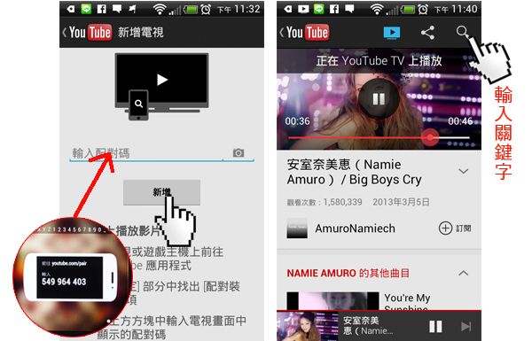 找到網址的畫面後,輸入序號就開啟了此功能,之後就可以直接用手機或平板來做YOUTUBE的影片搜尋了!!