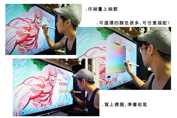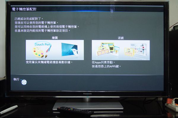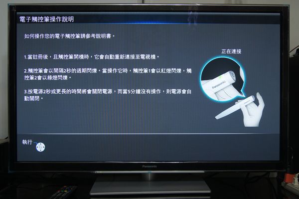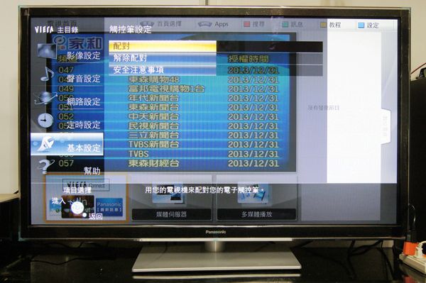 在使用前需至VIERA主目錄的基本設定裡選擇觸控筆設定來進行配對,接著就是跟著指示進行動作即可以完成配對。